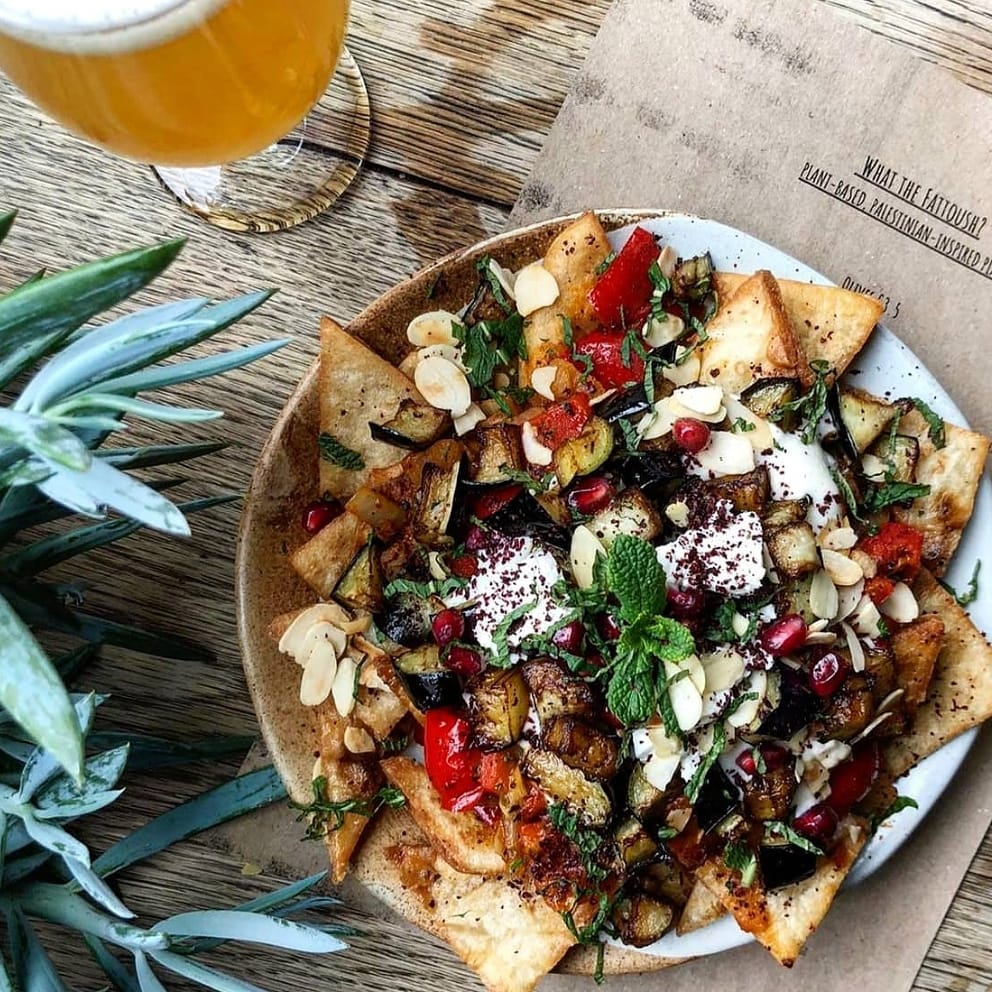A lively bar in the heart of Peckham's bustling creative hub, Copeland Park. Great indoor and outside seating with a variety of drinks. Gorgeous vegan Palestinian Plates from our current kitchen resident 'What the Fattoush'!