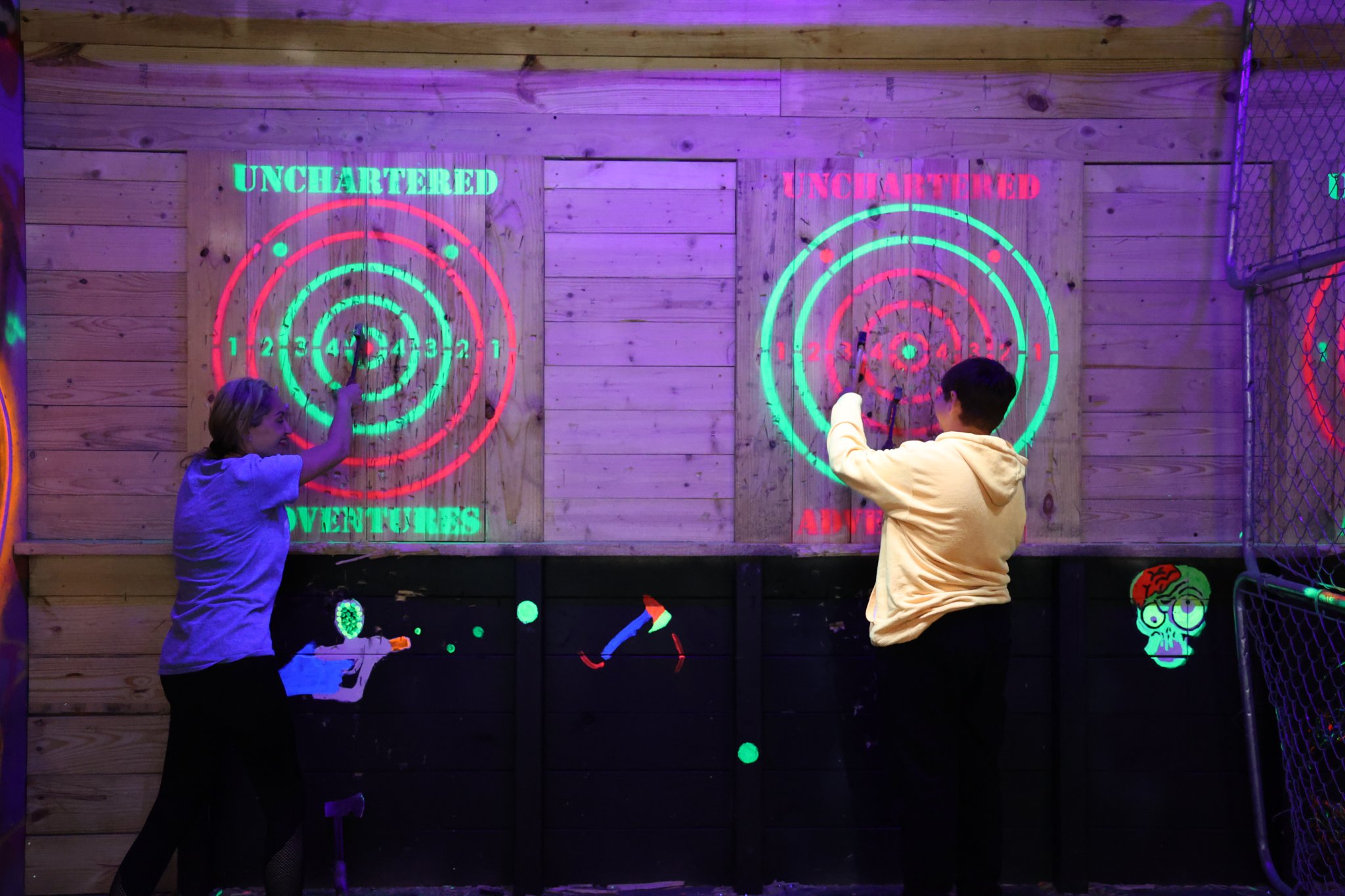 Smash rooms, axe throwing, bar/lounge, splatter paint, instagram room. soon to come airsoft target shooting and lots of instagram rooms!